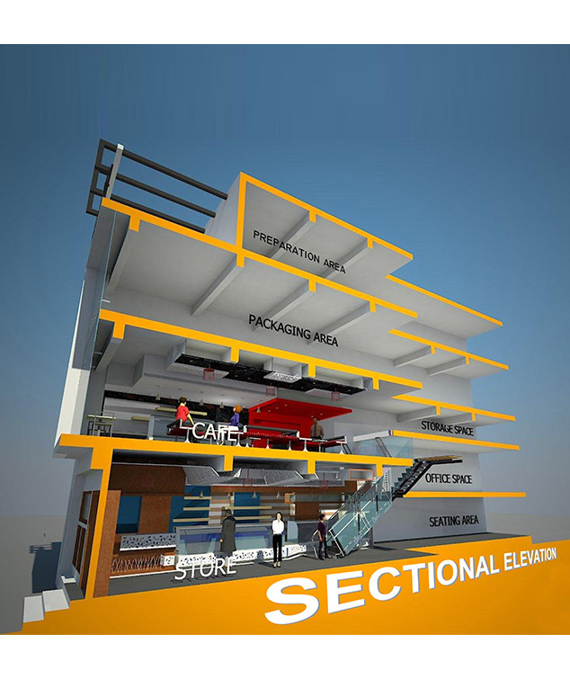 The uniqueness of the project is in the fact of discovering the awareness and the penetration of design as well as the changing pattern in the field of retail and merchandise in the India we live in today where a very traditional utilitarian sweet shop has been designed to look up market.